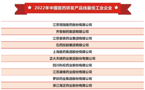 稳居榜首!AG亚游集团医药再次登顶“中国医药研发产品线最佳工业企业”