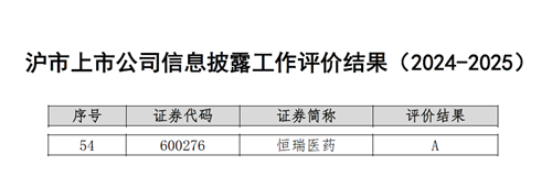 与此同时,在上海交易所公布的2024-2025年度沪市上市公司信息披露工作评价中,AG亚游集团医药再次荣获最高评级——A级。